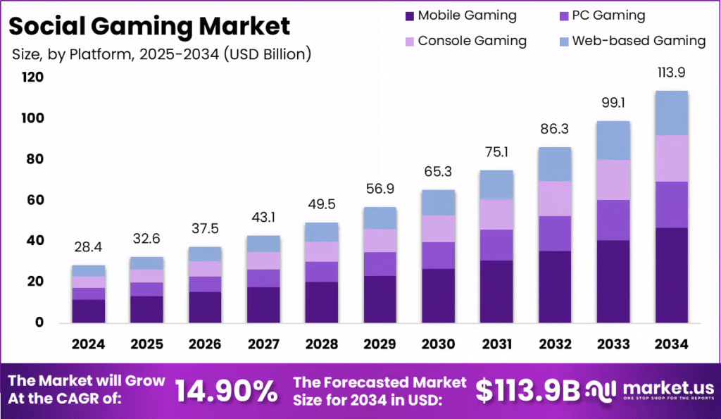 Another Market.us report found the social gaming market is set to grow at 14.9% CAGR globally from 2025-2034.